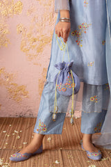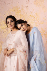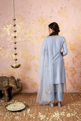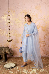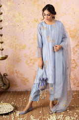 Ice Grey Embroidered KurtaSet With Scalloped Dupatta
