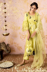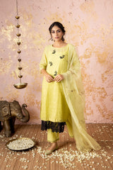 Lime Embroidered KurtaSet With Dupatta