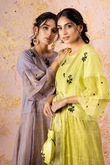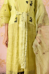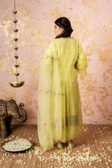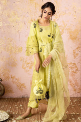 Lime Embroidered KurtaSet With Dupatta And Overlay