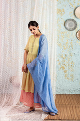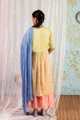 High slit pocket kurta with pleated sharara and glass bead embroidered dupatta