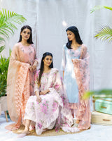 Fabrics: Kurta: Cotton with attached organza overlay, Pant: Cotton, Dupatta: Printed Organza