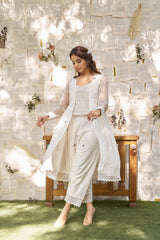 THE WHITE LOVE LETTER- SET OF 3 ( crop top, peplum & pants) - Naaz By Noor