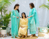 Iris yellow dupatta in organza with delicate scallop-edged hem thread work.