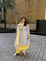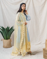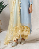 Fabrics: Kurta: Fine Cotton Chanderi, Pant: Cotton, Dupatta: Organza
