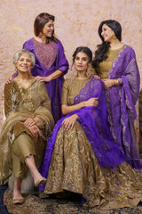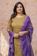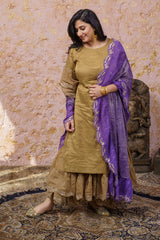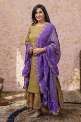 Rich Gold Kurta With Royal Purple Ruffled Dupatta