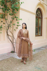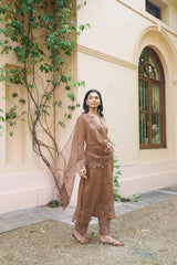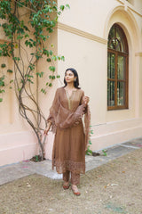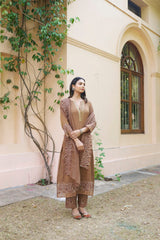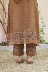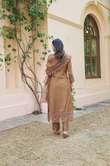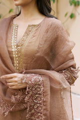 kikli brown-set of 3(kurta, pant & dupatta) - Naaz By Noor