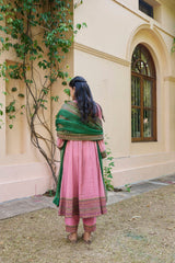 A green colour dupatta in organza with multi-coloured thread embroidery on all four sides.