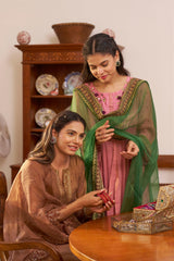 Fabrics: Kurta: tissue chanderi, pant: chanderi, Dupatta: organza