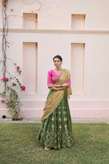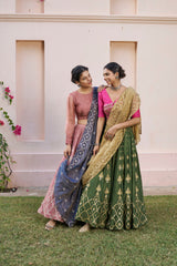 Fabrics: lehenga: chanderi, blouse: chanderi, Dupatta: tissue chanderi
