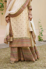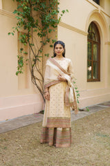 kikli golden cream sharara- set of 3( kurta, sharara & dupatta)