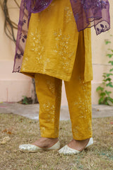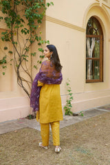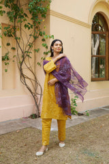 kikli mustard- set of 3( kurta, pant & dupatta) - Naaz By Noor