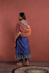 A kurta in chanderi with hand embroidered motifs , comes with a underslip with golden silver work at the lower end.