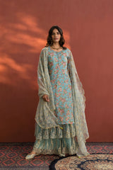 GULbagh- kurta with gheri, A-line sharara pants and dupatta