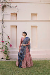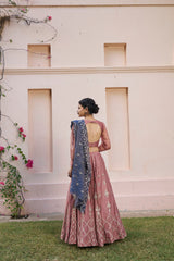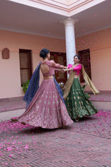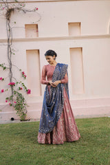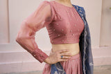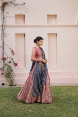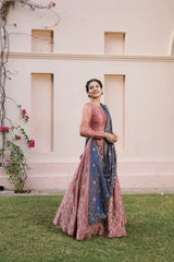 kikli dusky rose lehenga-set of 3( blouse, kalidar skirt & dupatta)