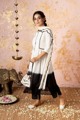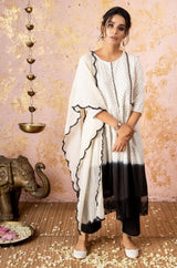 Black And White Ombre KurtaSet With Straight Pants And Stole