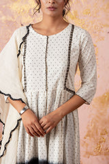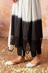 White and black ombre kurta set with black embroidery details on the bodice and black schiffli on the hem with stole