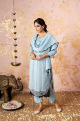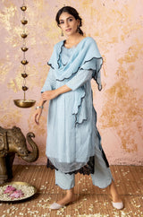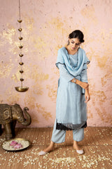 Blue Kurta With Straight Pants (Without Stole)