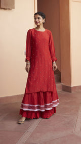 kikli crimson- set of 3(kurta, sharara & dupatta)
