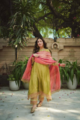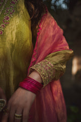 JOR BAAGH SOFT GREEN & HOT PINK SET OF 3( kurta, pant & dupatta)