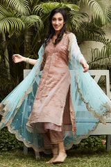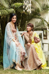 Zari golden kurta with gold self pant and dupatta